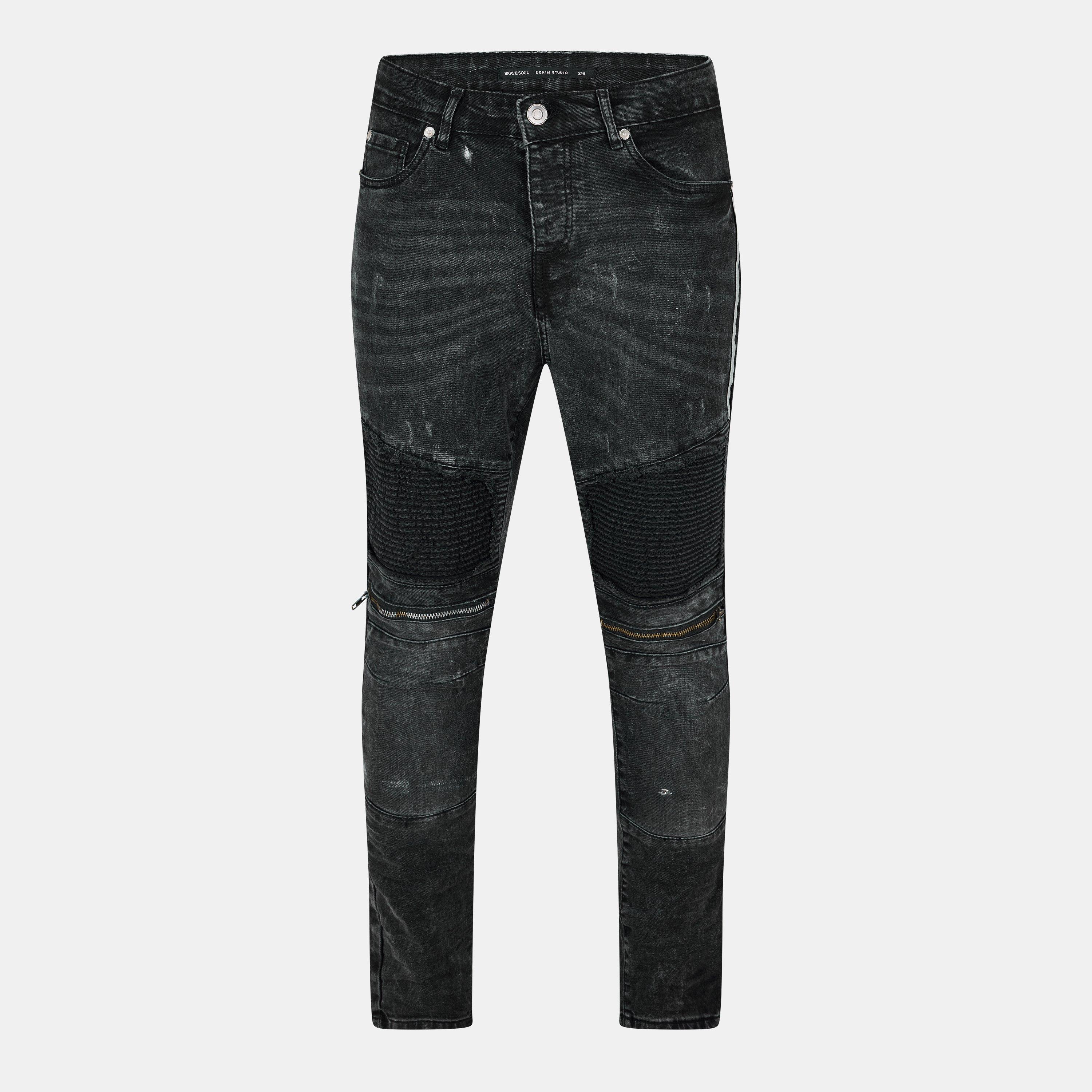 Dappere ziel Biker Jeans Biker paneel detail met distressing Horizontaal knie rits detail Reflecterende zilveren zijtape detail