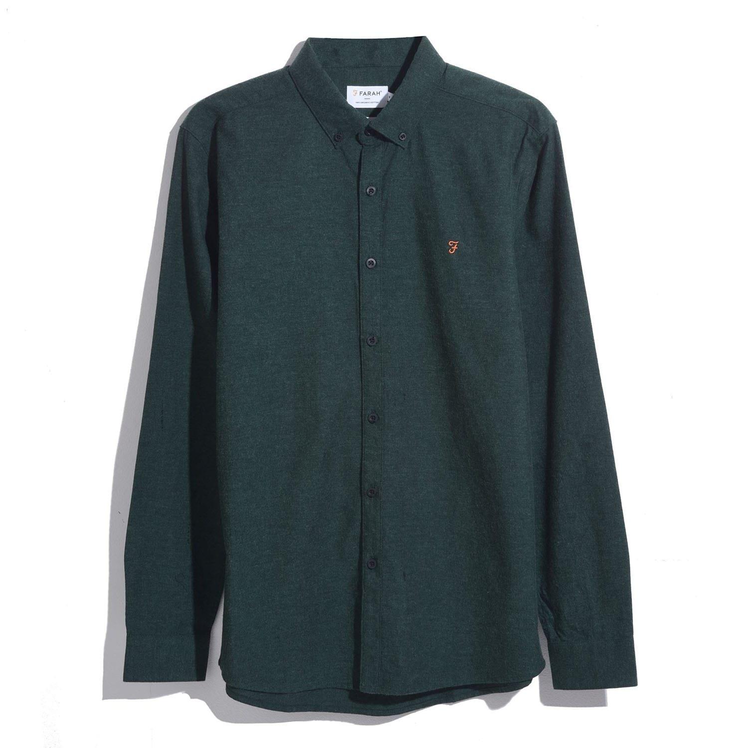 Heren Farah Steen Geborsteld Biologisch Katoenen Shirt in botanisch groen gemêleerd