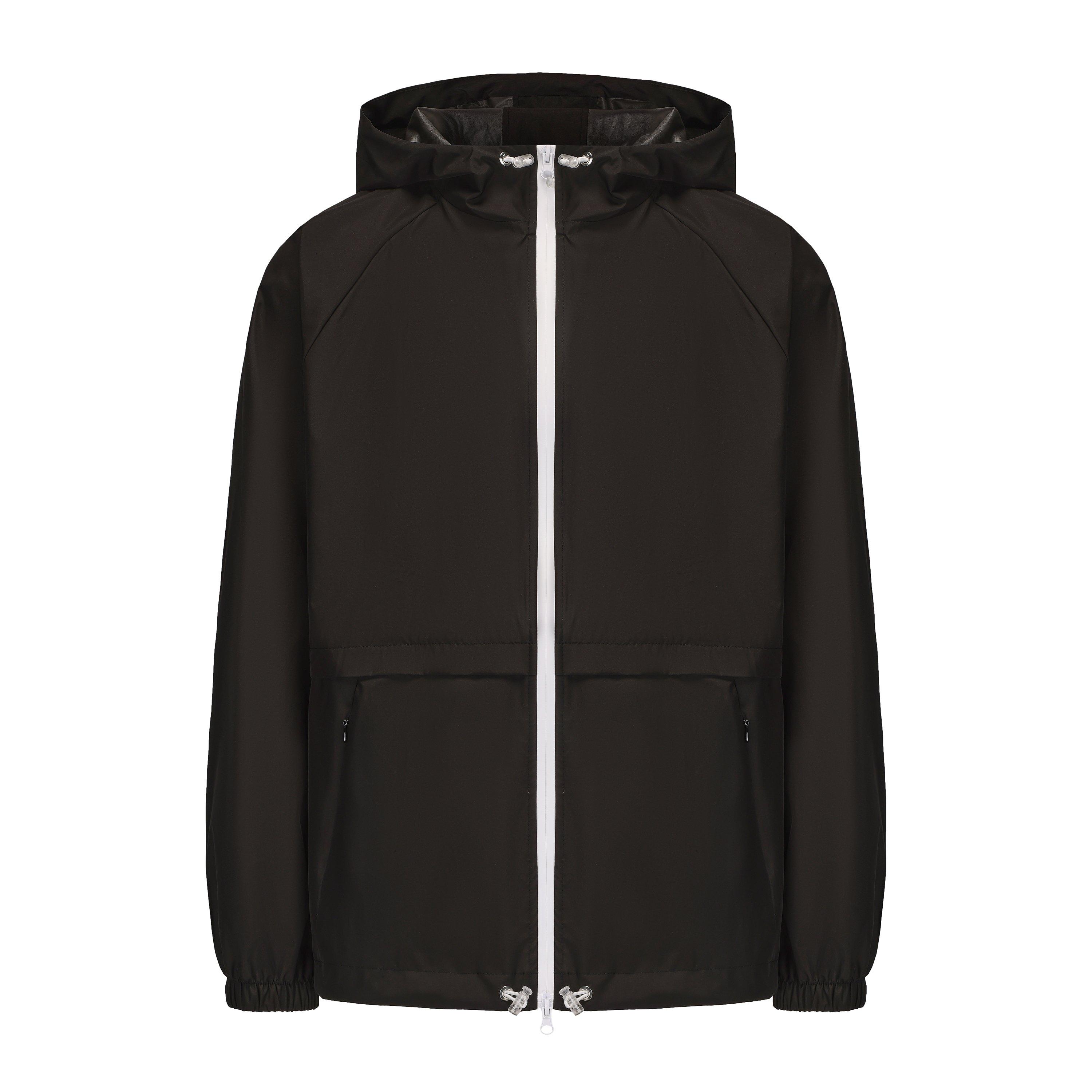 - Ontwerp: Strakke zwarte jas met capuchon en een slimme twist - rits de achterkant open om een ingebouwde tas te onthullen. Vouw de jas op in de tas en draag hem als rugzak.