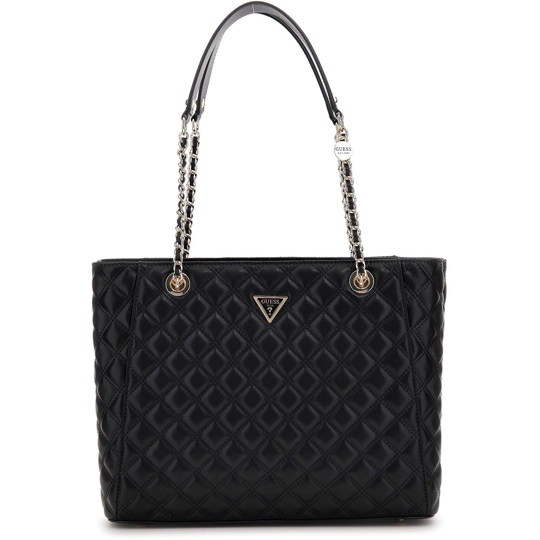 Verhoog uw ensemble met een vleugje elegantie met deze Guess Giully Tote Bag. Vakkundig gemaakt van polyurethaan in een imitatielederen samenstelling straalt deze tote bag stijlvolle verfijning uit en biedt het een handige draagtas voor uw dagelijkse benodigdheden. Met twee bovenste handvatten en een kettingriem kunt u deze tas handheld dragen of over uw schouder dragen voor gemakkelijk dragen, zodat u het op uw eigen manier kunt dragen. Een top ritssluiting opent naar een ruim interieur en een rits intern vak voor gemakkelijke toegang en organisatie van uw dagelijkse benodigdheden, vooral met de externe ritsvak waarmee u die kleine benodigdheden bij de hand kunt houden. Ontworpen in een gewatteerde diamantlook, in een klassieke kleurstelling, wordt deze tas bekroond door de metalen Guess-driehoek voor een iconische afwerking.