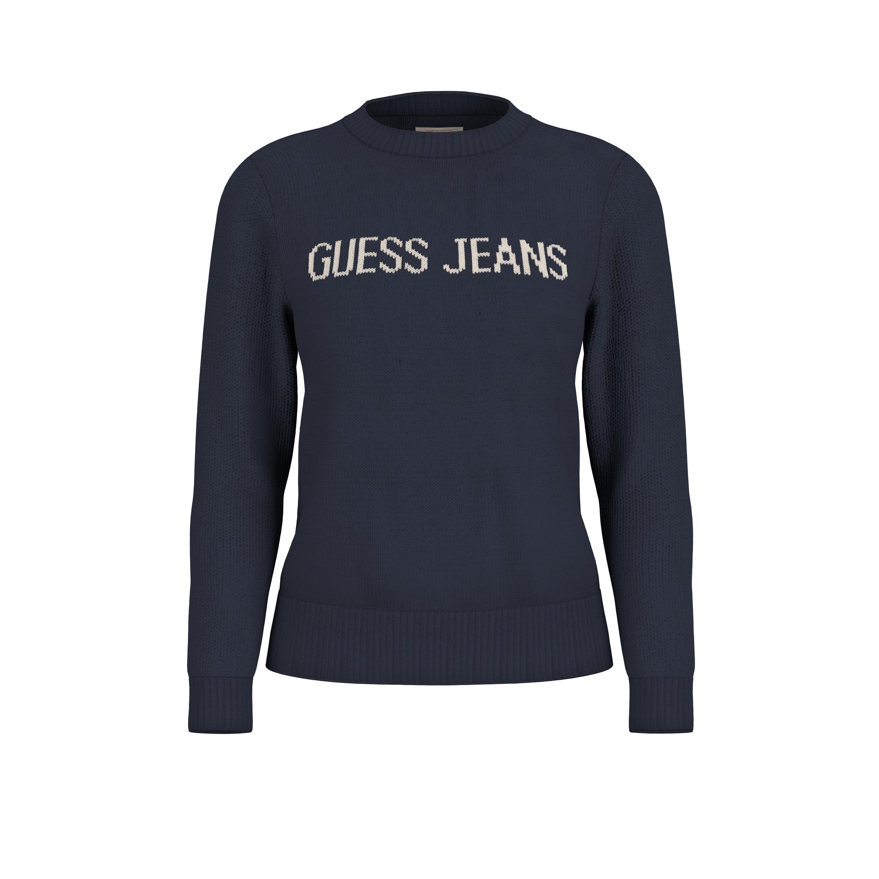Guess's Intarsia Gebreide Crew-Neck Trui is een pullovertrui die een intarsia-patroonwerk heeft in een klassieke stijl. Het gebreide ontwerp biedt zowel visuele textuur als comfort met zijn ronde halslijn.