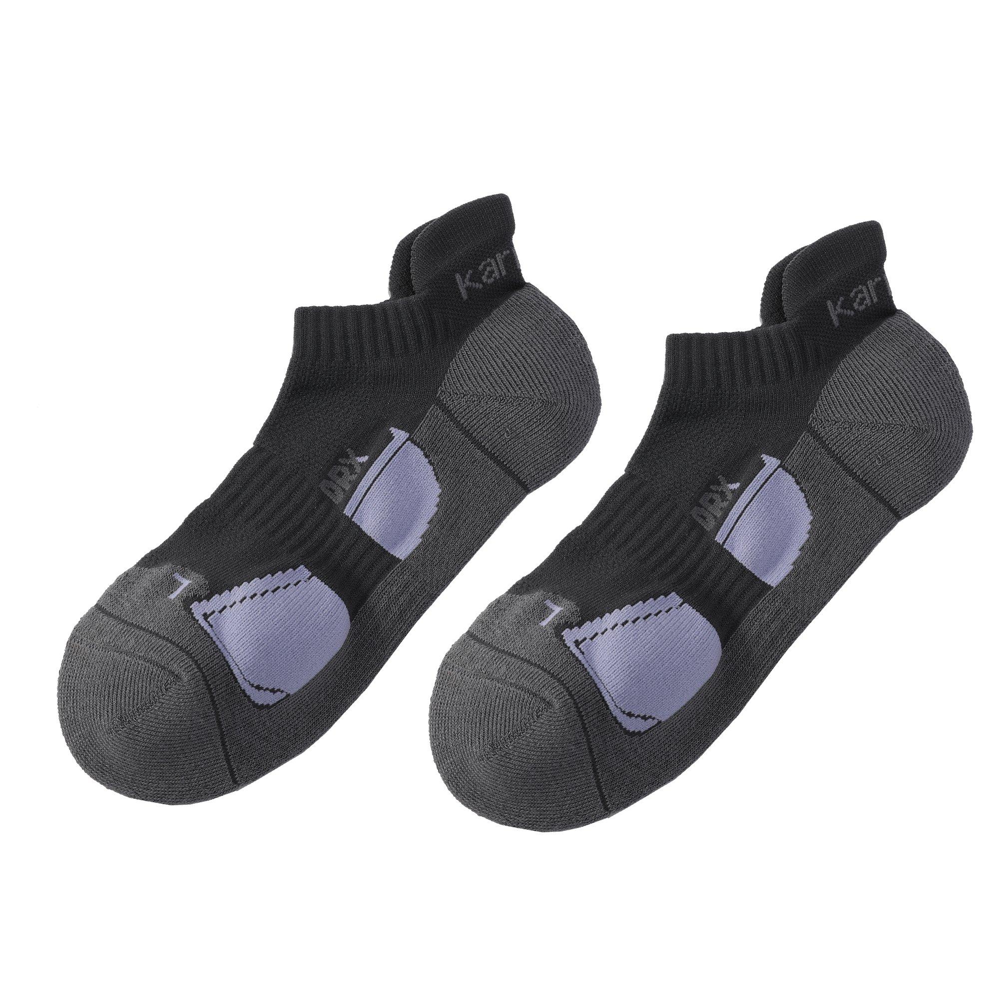 Karrimor 2 Pack Hardloopsokken Heren De Karrimor 2 Pack Hardloopsokken zijn perfect voor het hardlopen en bieden een comfortabele pasvorm met ergonomische vulling aan de teen en hiel voor extra comfort. Deze sportsokken hebben ook vochtregulerende stof voor extra comfort met een anti-geur behandeling om je voeten en sportschoenen langer fris te houden.