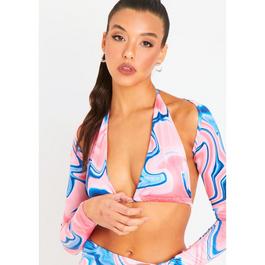 Missy Empire Marble Print Long Sleeve Mesh Crop Top