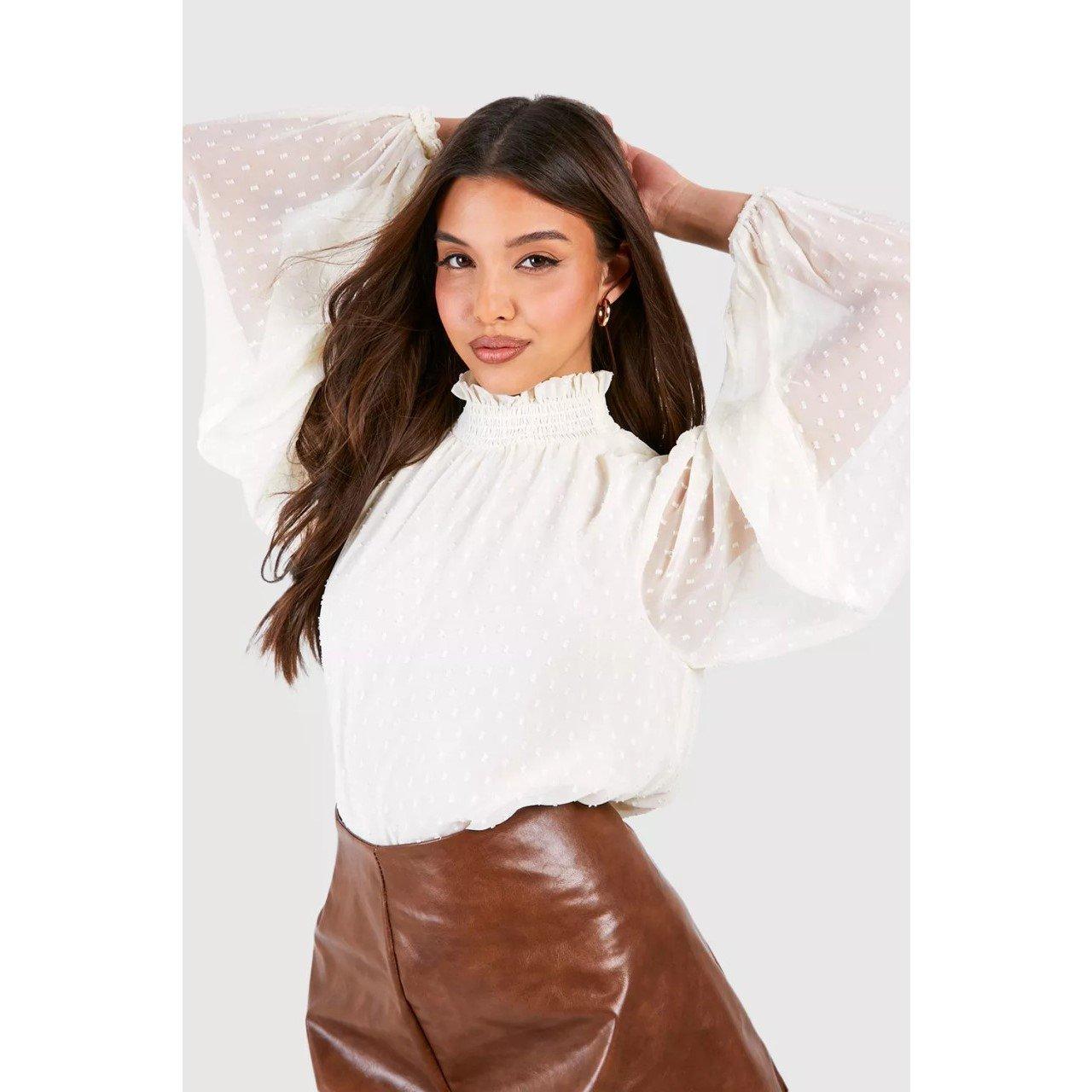Women's High Neck Blouse Top and Skirt Sets