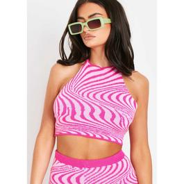 Missy Empire Jacquard Knit Tie Neck Crop Top