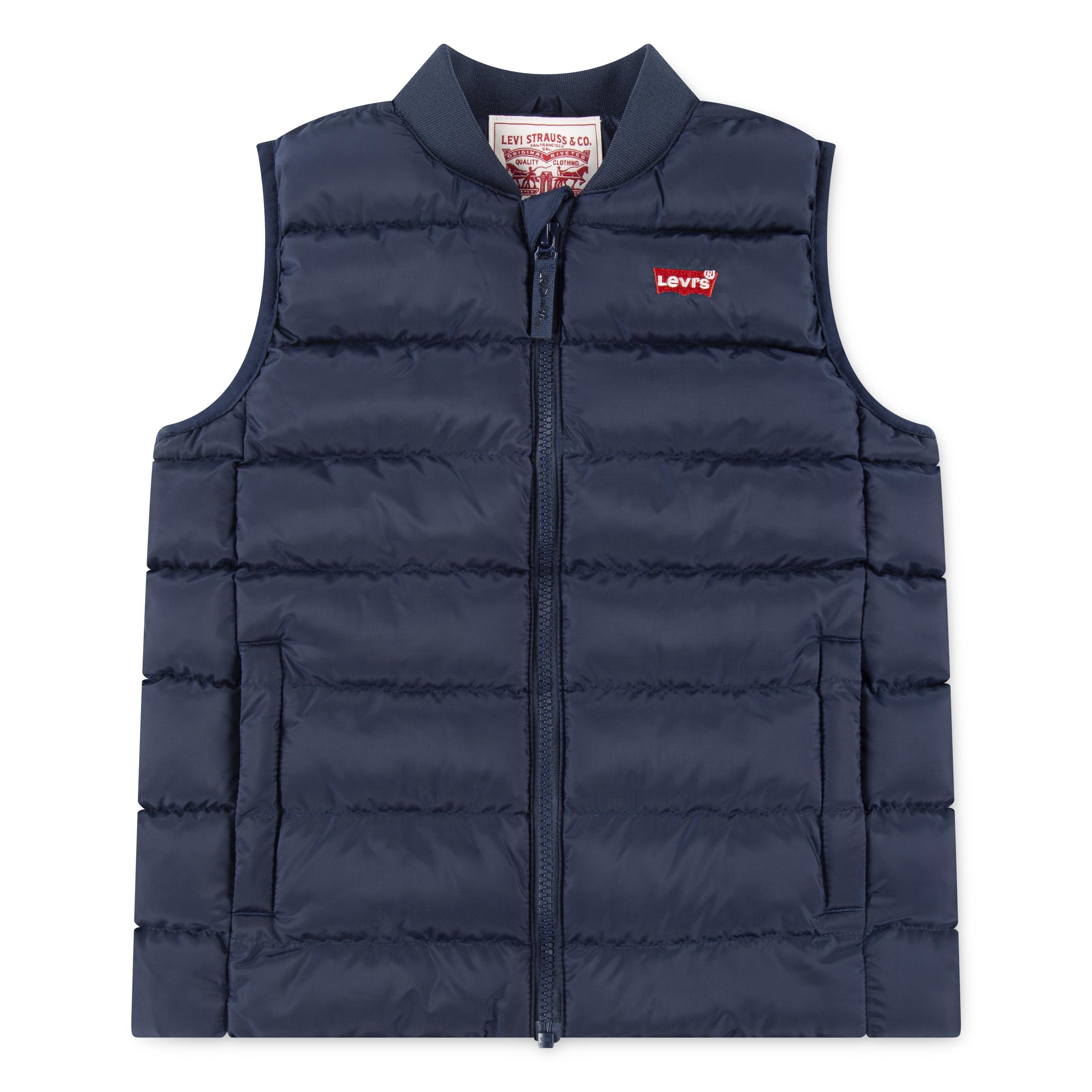De Kinder Levi's Lichtgewicht Gevoerde Mouwloze Gilet biedt praktische warmte met klassieke merkduurzaamheid. Dit mouwloze vestontwerp heeft geïsoleerde vulling om de kern warm te houden terwijl het volledige bewegingsvrijheid biedt, goed geschikt voor actieve kinderen die een laagje willen toevoegen in veranderlijk weer.
