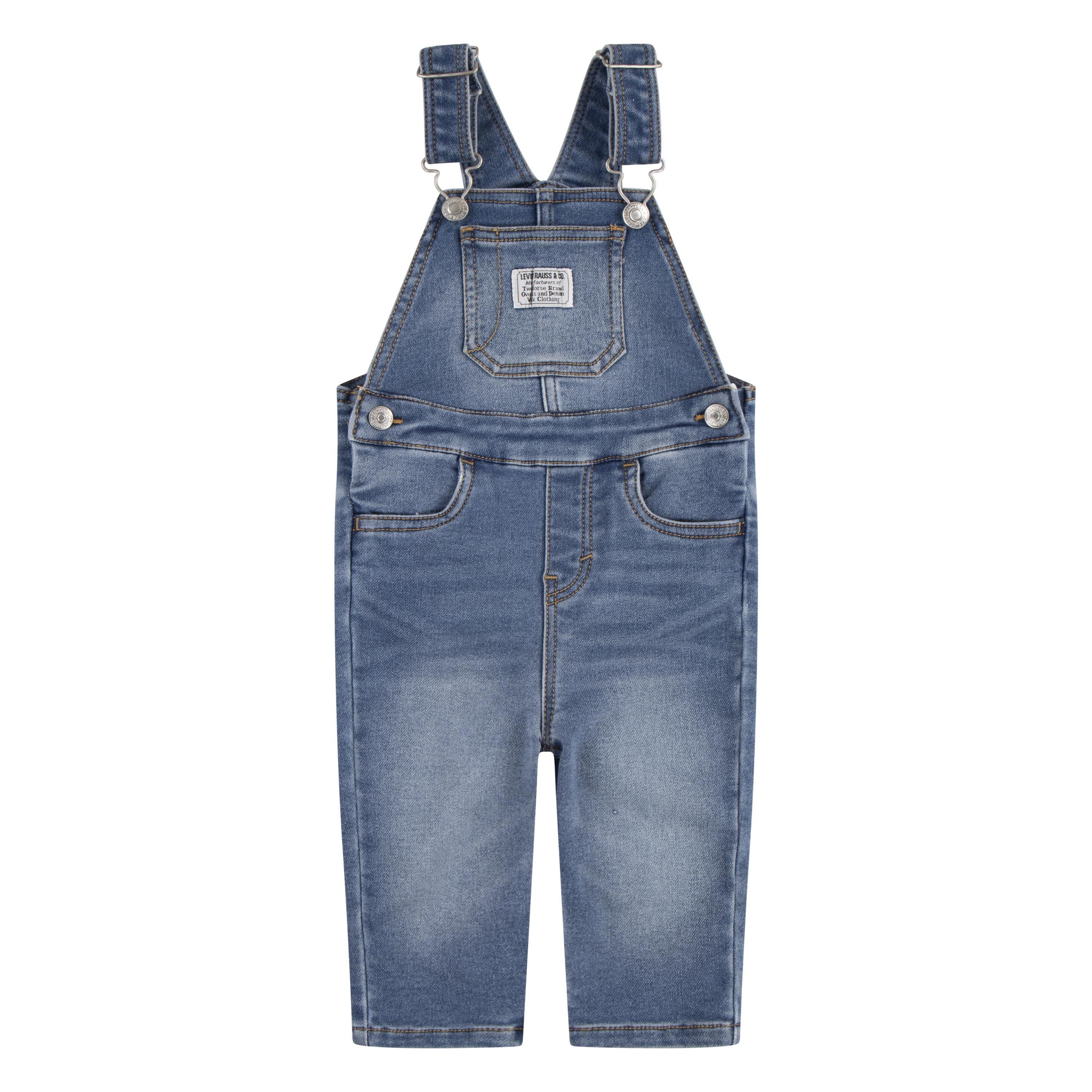 Levis' Kinder Denim Overalls hebben een klassieke werkoveral-stijl met nauwkeurige details, en bieden comfort voor actieve kinderen en jongeren met doordachte ontwerpelementen.