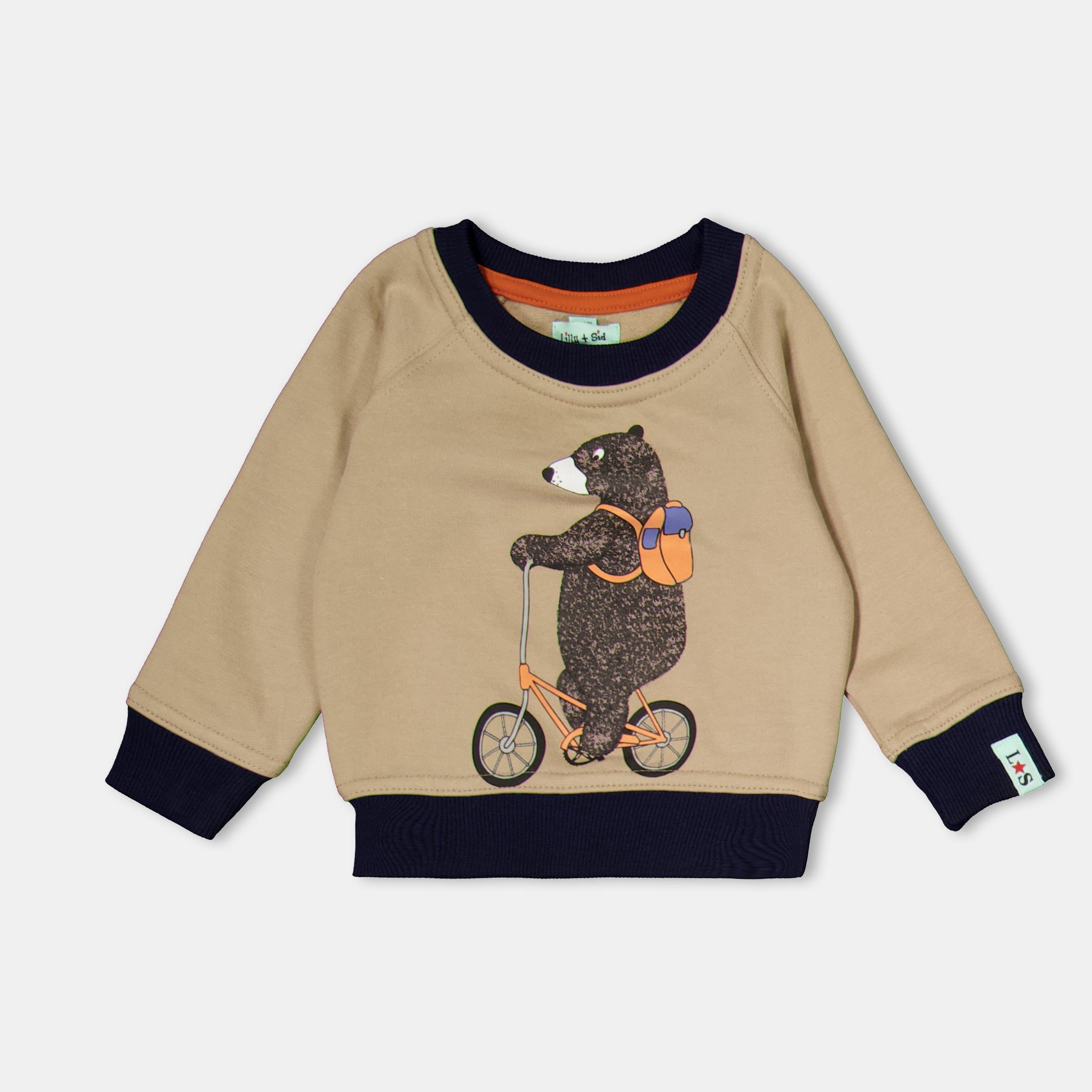 Lilly en Sid's Kids' Bear Bike Crew-Neck Sweatshirt balanceert speelse illustratie met gezellige comfort. De klassieke crew-neck stijl heeft een berenmotief dat subtiele karakter toevoegt aan dagelijkse outfits.
