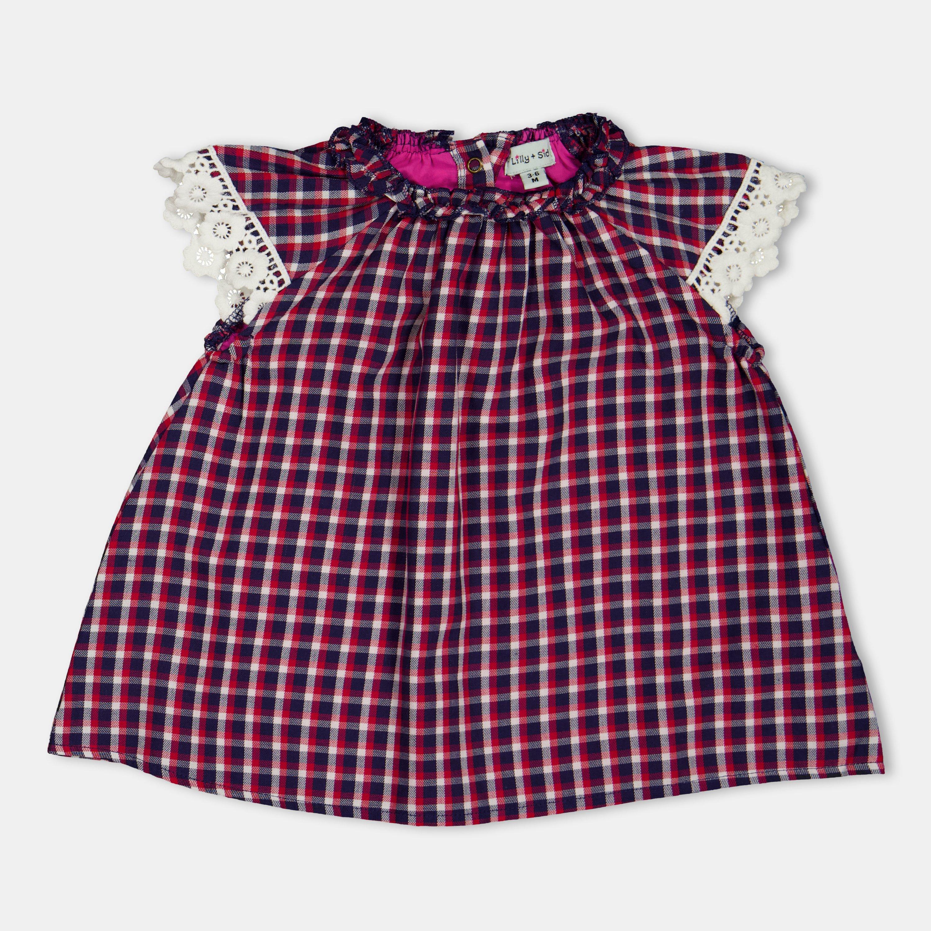 Lilly en Sid's Kinderen Check A-lijn Jurk combineert een speels patroon met een praktische ontwerp, met een klassieke snit die comfortabel meebeweegt met actieve kinderen. Dit aanpasbare stuk kinderkleding brengt duurzame mode in het dagelijks leven.