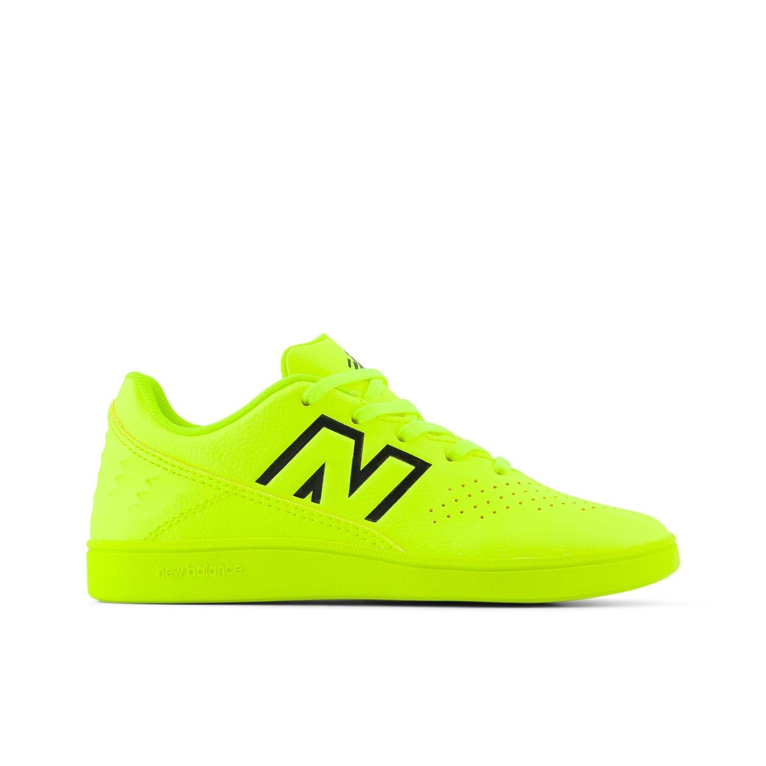 Juniors New Balance Audazo Command V6 Indoor Football Boots in lime.