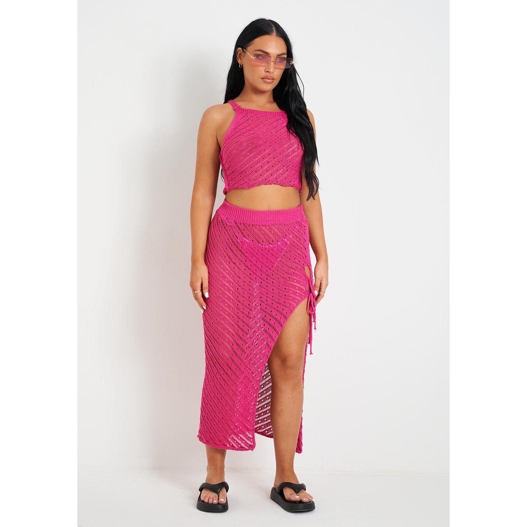 Crochet Knit Beach Crop Top And Midi Skirt Set
