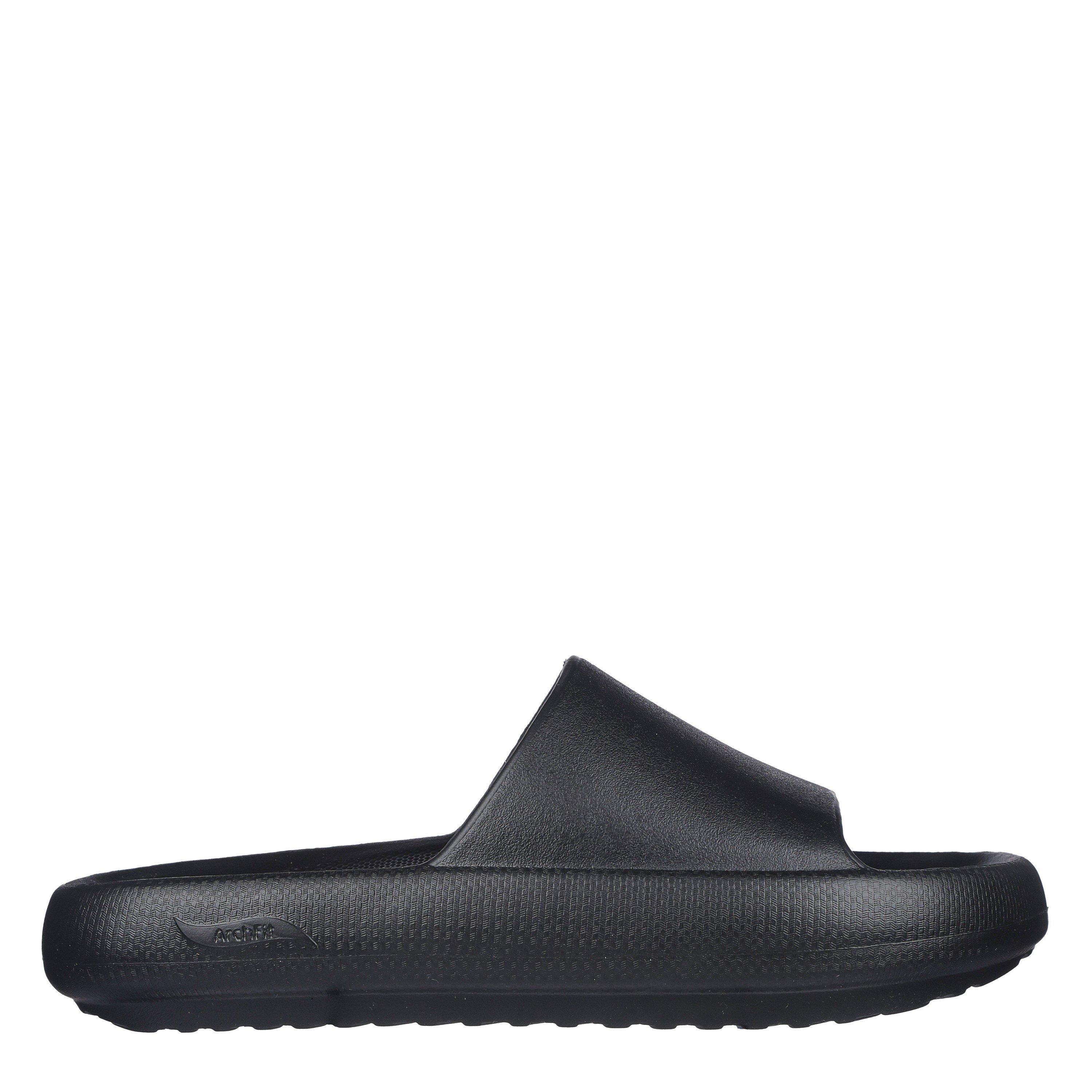Slide in ondersteunend comfort en trendy sculpturale stijl met Skechers Foamies®: Arch Fit® Horizon. Deze monochrome vegan slide heeft een Foamies® EVA enkele band bovenwerk en een Arch Fit® gevormde voetbed.