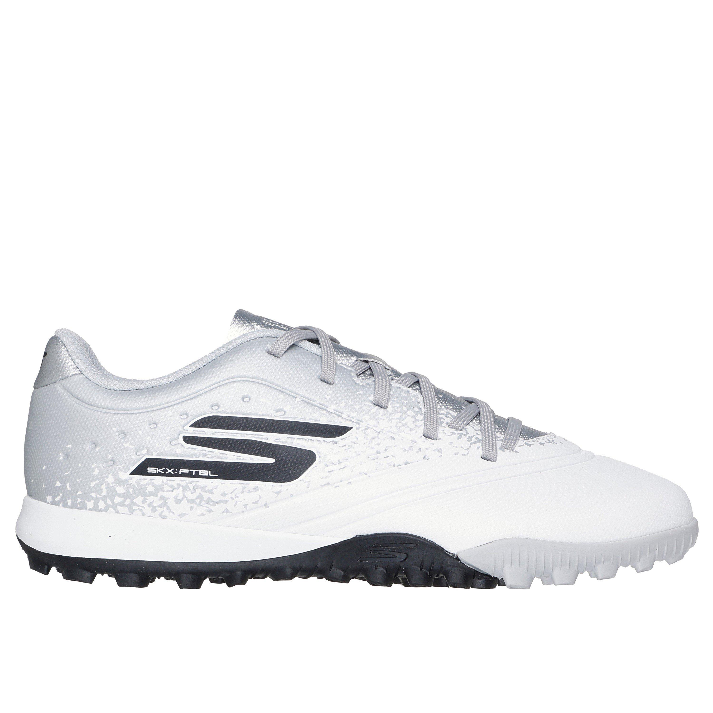 Seconden tellen op het veld, daarom zijn de Sketchers Razor Astro Turf voetbalschoenen ontworpen om jouw kleintjes de voorsprong te geven wanneer het er het meest toe doet. De responsieve rubberen onderkant helpt hen om in alle richtingen te starten, stoppen en versnellen, terwijl het tractiepatroon en anatomisch ontworpen hielstuk zorgen voor superieure grip en stabiliteit voor uitbarstingen van snelheid. Afgewerkt met een ondersteunende Hyper Burst Pro sokvoering om het comfort te maximaliseren, help jouw superster om op de voorvoet te beginnen met deze voetbalschoenen.