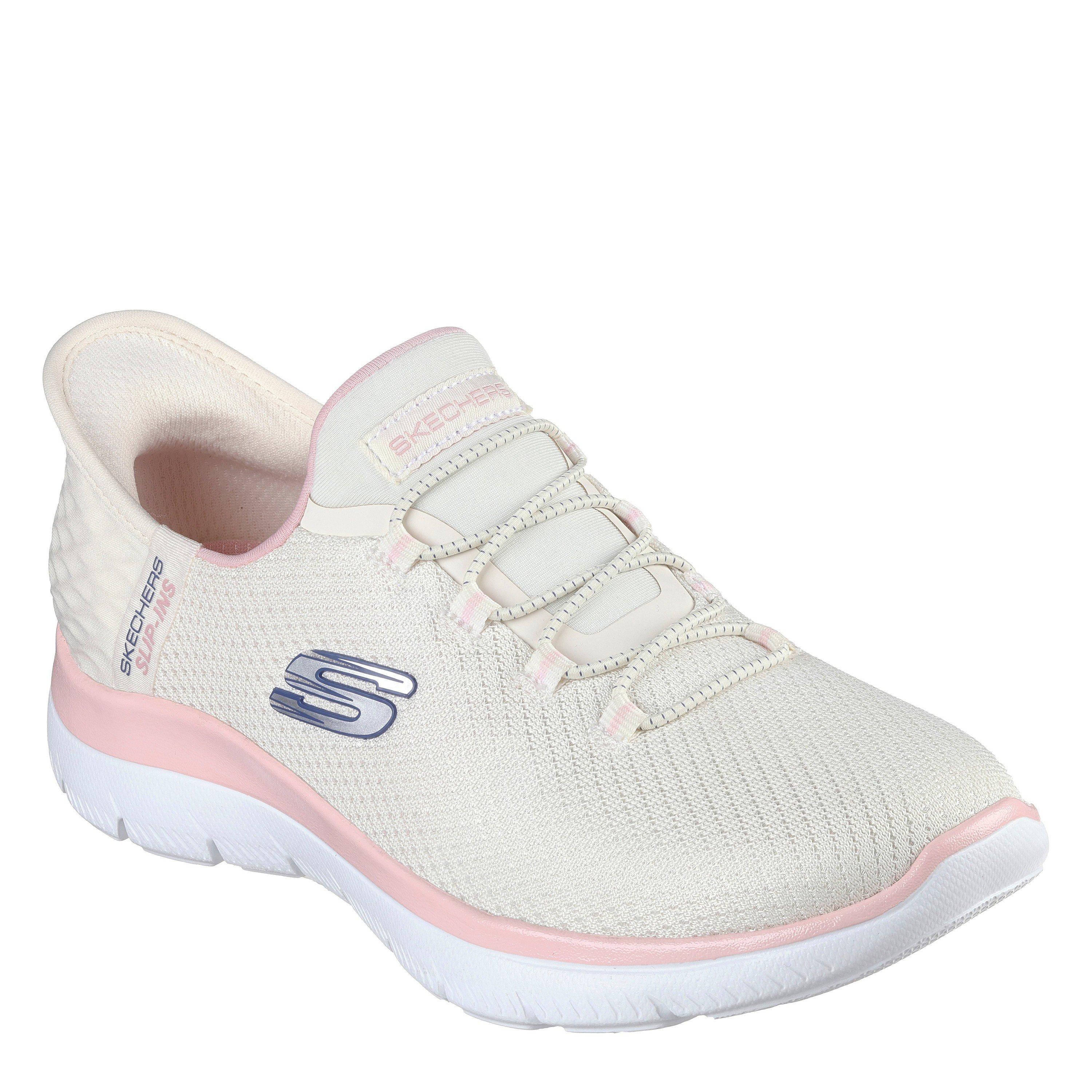 Versnel je tempo met verhoogd draaggemak en platinumcomfort met Skechers Hands Free Slip-ins®: Summits - Diamond Dream. Ontworpen met onze exclusieve Heel Pillow™, heeft deze vegan stijl een bovenwerk van mesh met rekbare veters, metallic middenzoolafwerking en een gevoerde Skechers Air-Cooled Memory Foam® comfortzool.