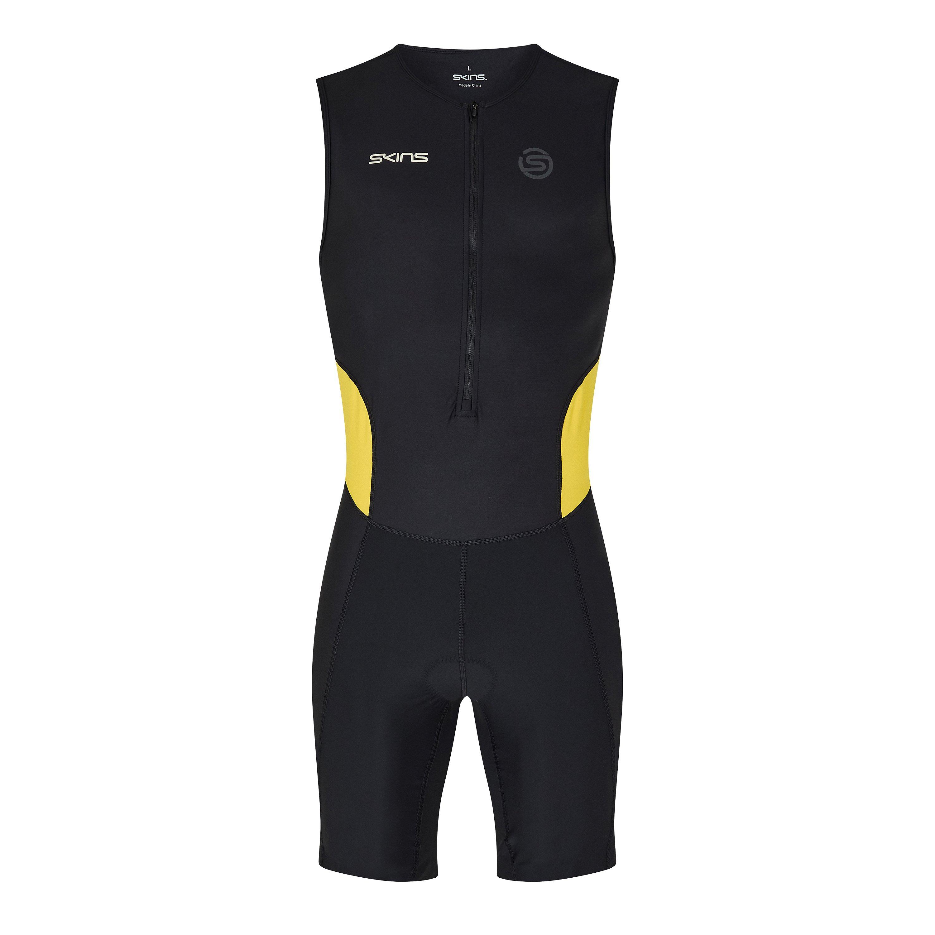 Ontworpen voor eliteprestaties, de Skins' Men's Brand Fold Triathlon Suit integreert compressietechnologie met een gestroomlijnd ontwerp voor verminderde weerstand en verbeterde spiersupport. Deze triathlonuitrusting biedt professionele sportkleding voor serieuze concurrenten.