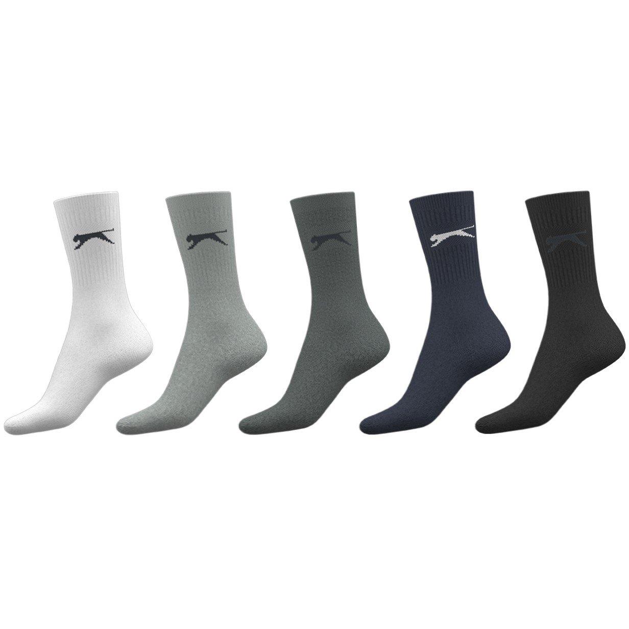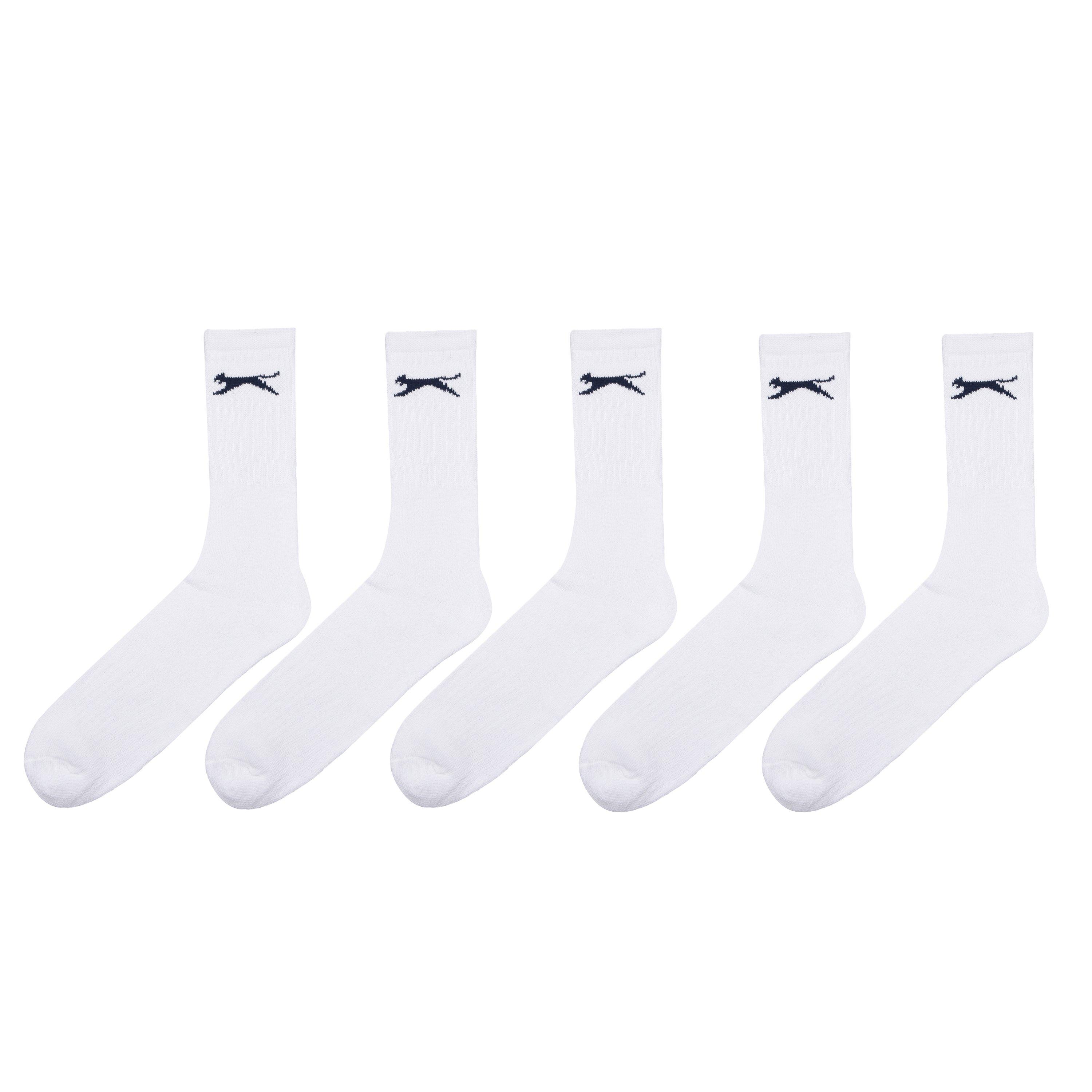 Slazenger 5 Pack Crew Socks Heren Dit pakket van 5 Slazenger Crew Socks heeft een elastische enkelopening met het Slazenger-logo.