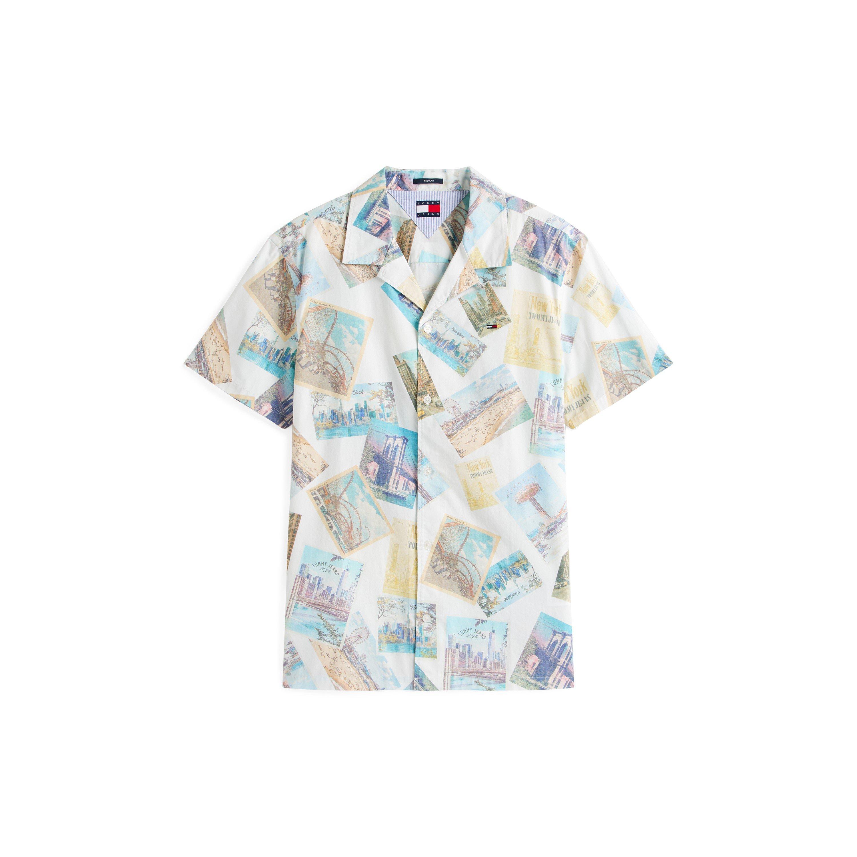 Het Tommy Jeans All Over Print Camp Patroon Shirt biedt casual zomerstijl met zijn gedurfde grafische ontwerp en ontspannen snit. Gemaakt met een camp collar en korte mouwen voor gemakkelijk dragen in warm weer.