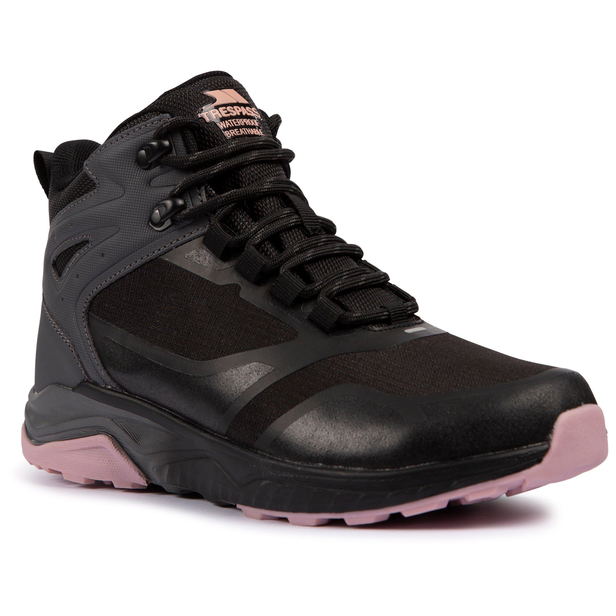 Tresspass Dames Waterdichte Wandelschoenen bieden robuuste bescherming met trail-klaar comfort. Ontworpen om uitdagend buiten terrein aan te pakken terwijl de voeten droog blijven, beschikt dit essentiële schoeisel over een duurzame constructie met technische prestatiekenmerken.