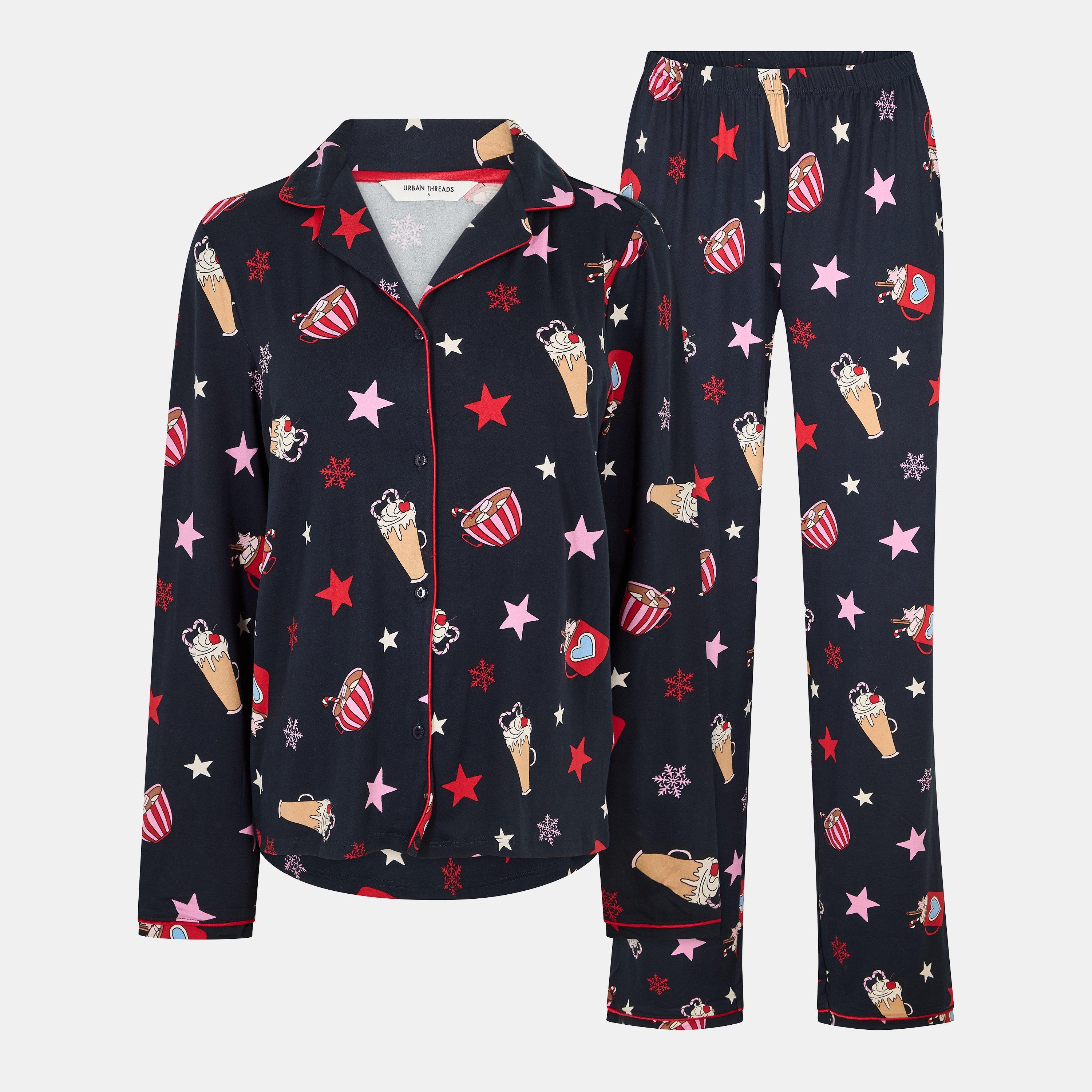 Urban Threads' lange mouwen pyjama set biedt comfort als slaapoutfit. Het gecoördineerde nachtmodeontwerp heeft op maat gemaakte details en een relaxte pasvorm voor gezellige ontspanning en bedtijd.