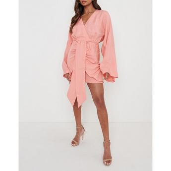 Brown Smudge Print Belted Wrap Shirt Midi Dress