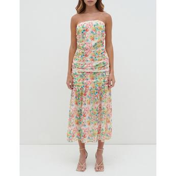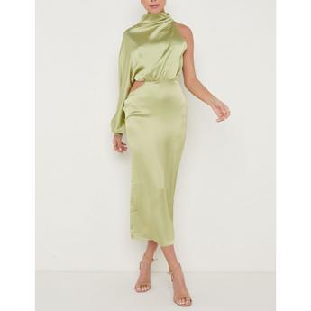 Blush Floral Embroidered Chiffon One Shoulder Midi Dress