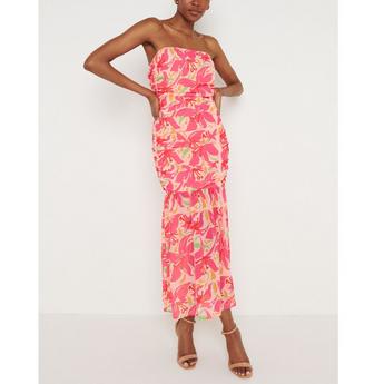 Black And Coral Red Floral Print Strappy Slip Midi Dress
