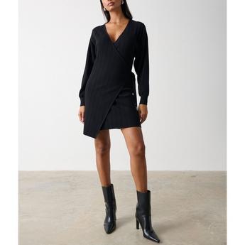 Black And White Animal Print Belted Wrap Shirt Midi Dress