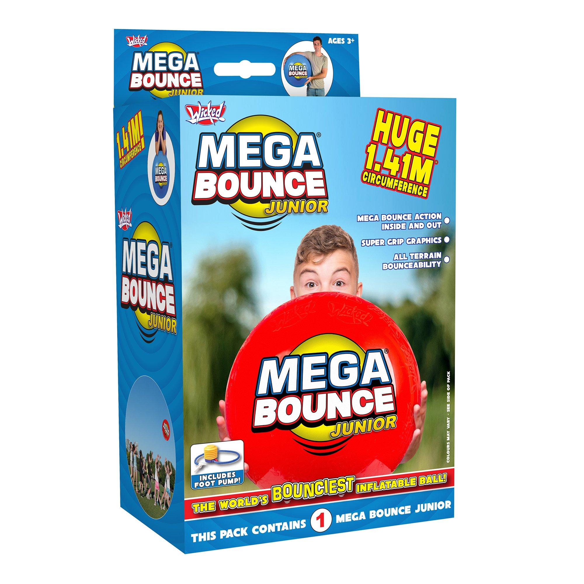 Wicked's Unisex Kids Mega Bounce Junior Inflatable Ball provides impressive dimension with its substantial 45 cm diameter, ideal for children's outdoor play. The textured graphics improve handling while the super durable build ensures longevity across multiple surfaces, delivering endless fun.